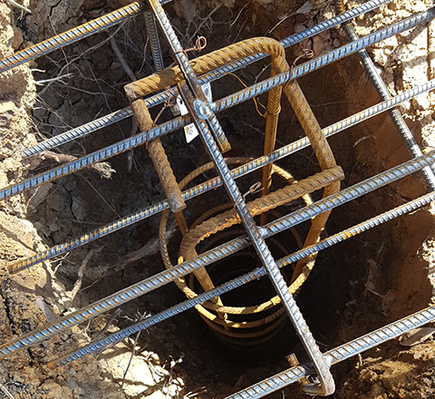 In wet and coastal areas where footings and slabs require further support, bored pier footings come into play. Holes are drilled down to the level of good load bearing soil after which they are filled with concrete.