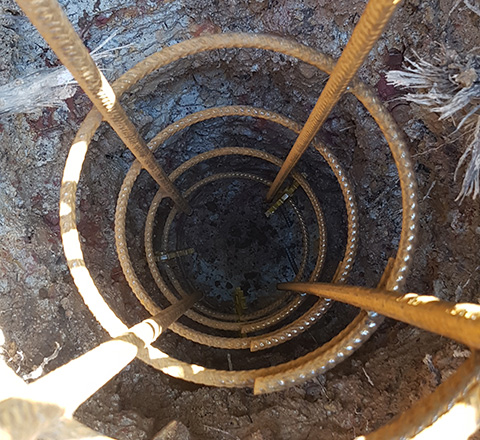 The simplest and most cost-effective foundation, pad footings, also called isolated or spread footings, are mostly used for shallow foundations in order to carry and spread concentrated loads from columns or pillars. They are constructed by digging holes into the ground, fitting the holes with a reinforcement cage, and then pouring a concrete mix to ground level.